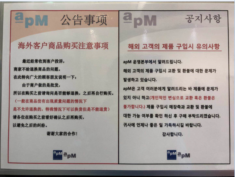 签收后24小时内申请换货,并在48小时内寄回 | 商品存在质量问题、配送失误、微小瑕疵、未经客服同意的私自返货不予办理并拒签,由邮寄方承担相关所产生的费用 | 本站承担返货国内普通快递费用(如申通、圆通、中通等运费人民币10元内)+中转站点到韩国的全部运费费用,韩国收到返货换好,跟客户其他包裹一起发回(运费客户自己承担) | 本站收到退件,15个工作日内办理完成换货 |